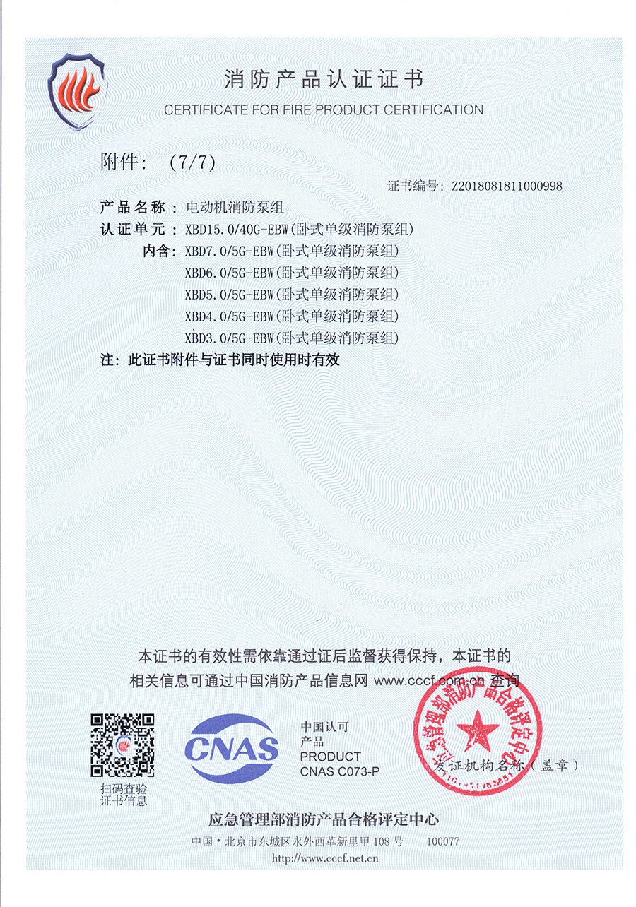 臥式單級EBW-消防產(chǎn)品認證證書(shū)