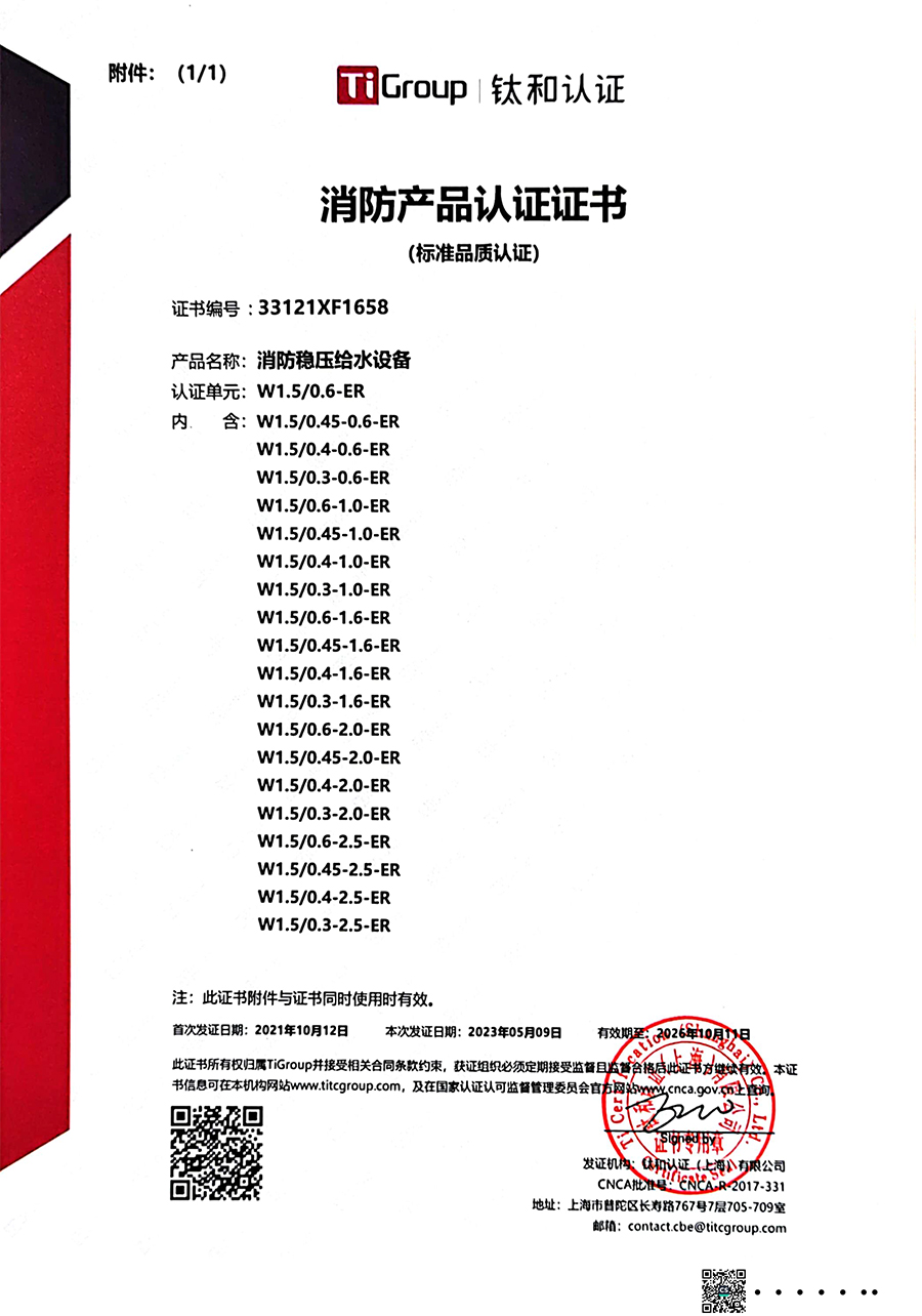 消防穩壓給水設備-消防產(chǎn)品認證證書(shū)