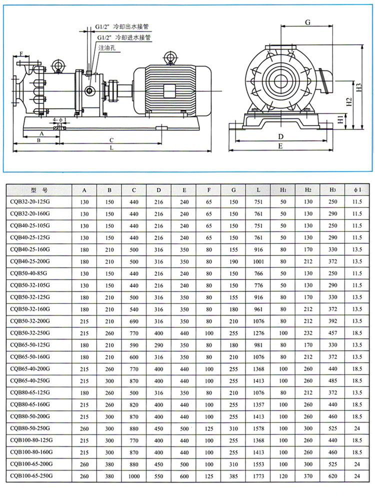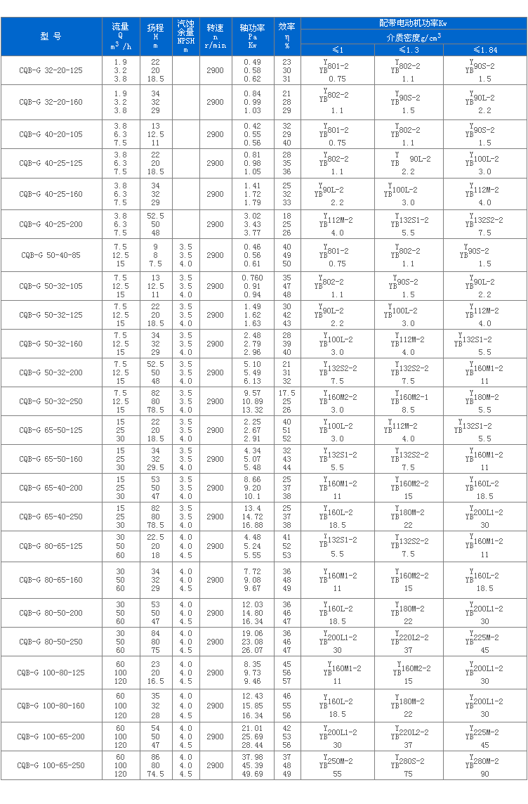 上海二泵CQB- G型高溫保溫泵采用多重循環(huán)冷卻結構,保證了原動(dòng)力和磁傳動(dòng)的可靠性和穩定性,同時(shí)采用柱銷(xiāo)聯(lián)軸器減少了泵的噪音和震動(dòng),便拆式和柱銷(xiāo)聯(lián)軸器同時(shí)使用,使泵的結構增長(cháng),更有利于泵的散熱。同時(shí),也十分方便用戶(hù)的維修或更換零件,在泵的外轉子部分還設計了散熱風(fēng)葉,確保磁鋼的穩定性。本系列泵適用于輸送高溫介質(zhì),溫度≤300℃。