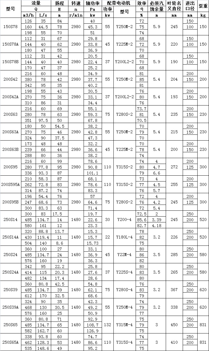 S型雙吸中開(kāi)泵型號說(shuō)明: