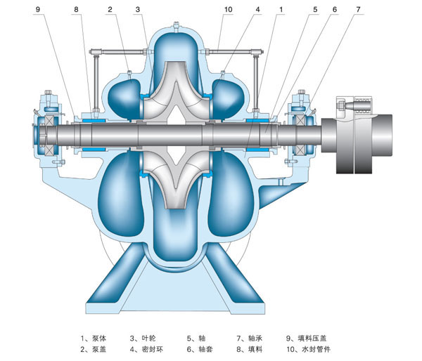 EPOW型/S型雙吸中開(kāi)泵產(chǎn)品結構圖: